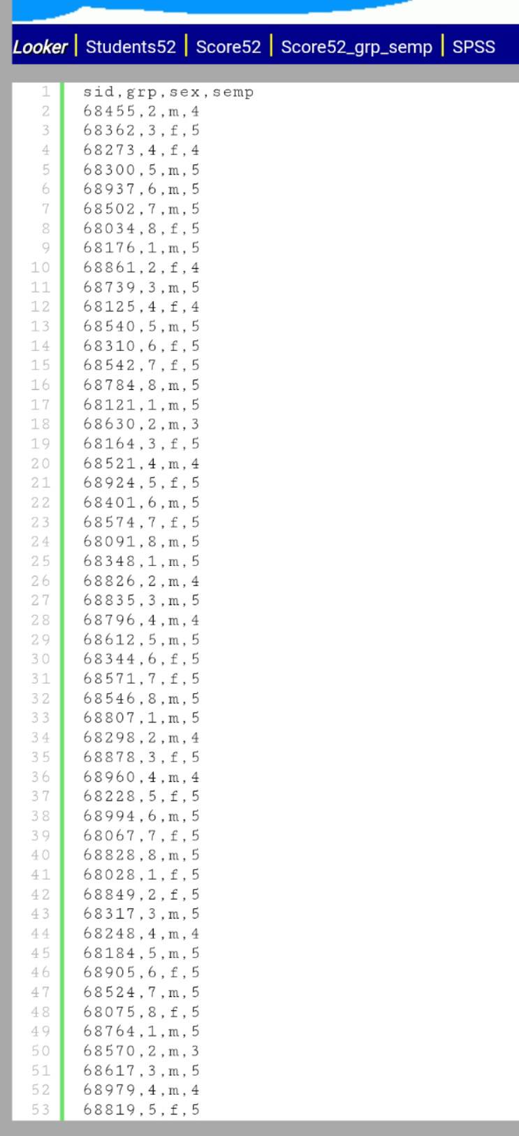 sid,grp,sex,semp